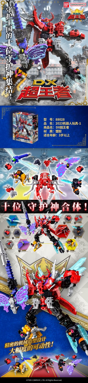 【國內(nèi)商品】萬代《蟲王戰(zhàn)隊(duì)超王者》系列DX超王者隆重登場! 守護(hù)王國的十位守護(hù)神齊聚合體,國王們乘坐的機(jī)器人“超王者”誕生,沖破障礙打敗敵人。快發(fā)揮同伴相助的強(qiáng)勁力量,體驗(yàn)百變的DX超王者合體吧!新品現(xiàn)已在各大百貨商店上線,快把他帶回家吧!*不同店鋪的新品到店時(shí)間及庫存情況不相同,詳情請以各店鋪現(xiàn)場公布的實(shí)際情況為準(zhǔn)。